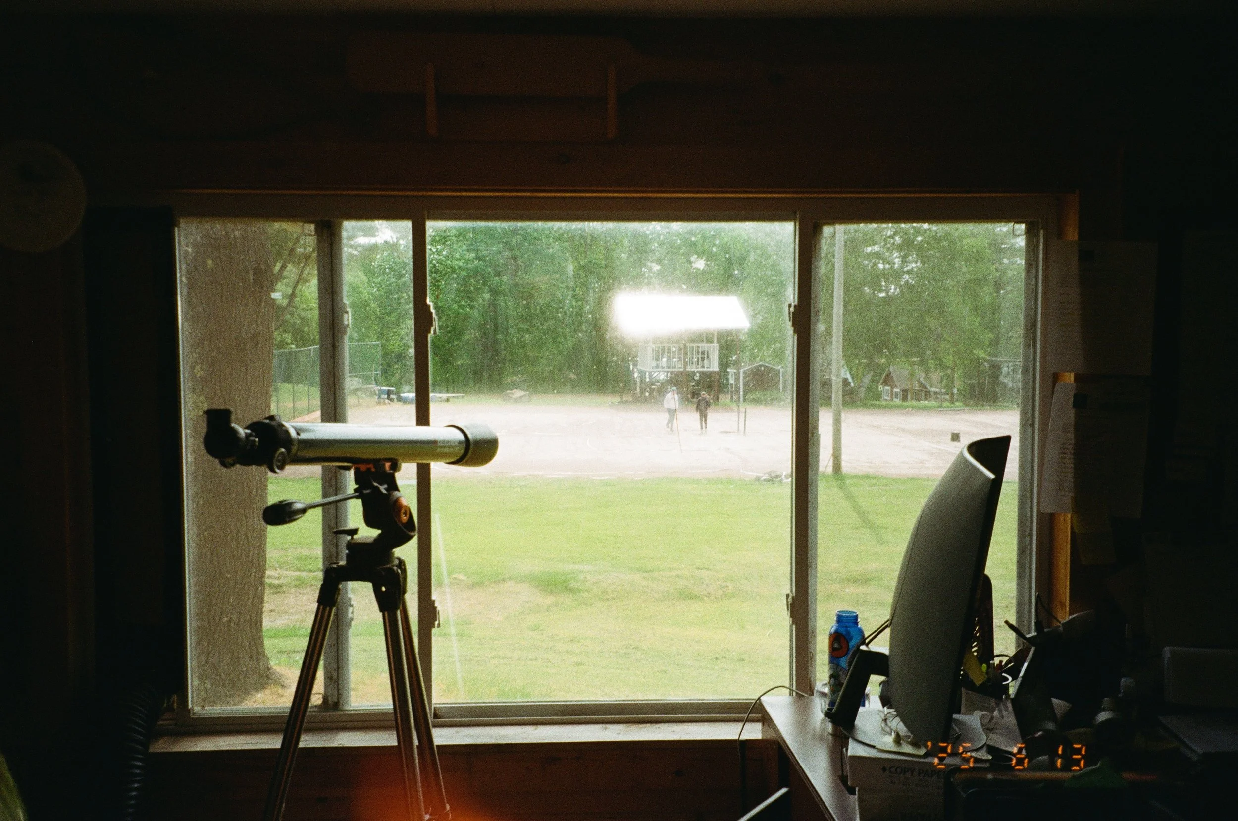 After dinner, I would go watch whatever evening event is taking place. At this point in the day, the goings-on were entirely separate from me, organized by another pair of hands, one of the many pairs of hands hard at work to make the machine run smoothly. Often, I could sit on the front porch of the office, or on the hill around back, and see many activities going at once, campers eight years old playing the most competitive basketball game I’ve ever seen, or else twelve-year-old boys running quick as streaks of light, looking for a wooden hatchet hidden somewhere on the campgrounds.
